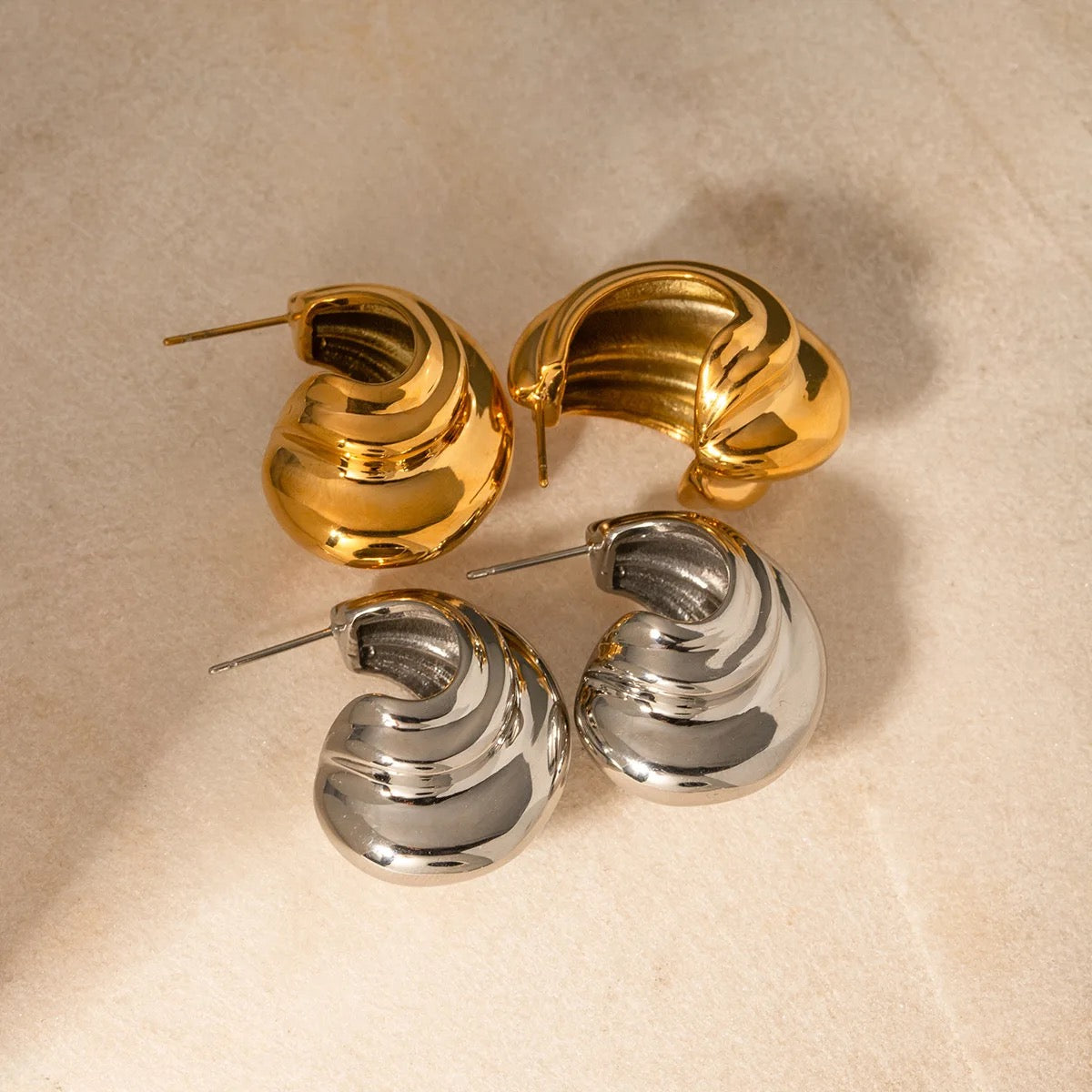 An exaggerate triple ridge teardrop shape featuring a stud closure.